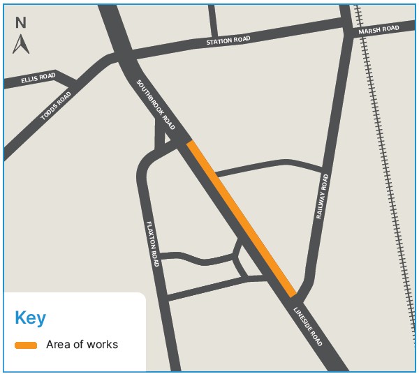 While repairs are taking place a lane shift will be in place along Lineside Road. Two-way traffic and access to businesses will be maintained at all times.