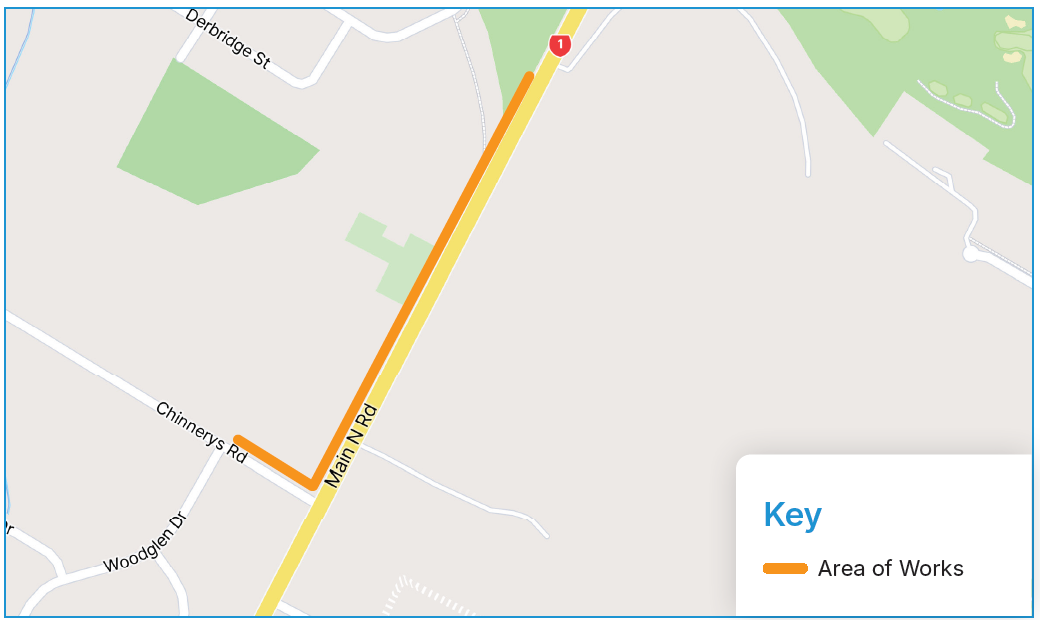 Chinnerys Road between Woodglen Drive and State Highway 1 will have an east bound lane closure and restricted movements at the intersection during the construction period — a detour route will be provided. Further information on the timing and traffic management impacts will be communicated in advance of the works commencing.
