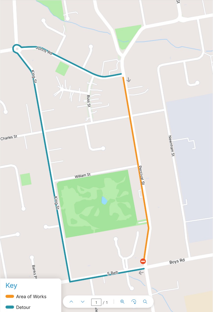 The northbound lane of Percival Street will be closed between South Belt and Johns Road for the duration of the works.