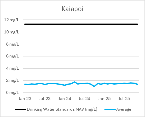 Taumata Arowai is responsible for setting the New Zealand Drinking Water Standards which specify the maximum amount of different compounds, including Nitrates, that are safe to have in our drinking water. These are known as Maximum Allowable Values (MAVs). More information on nitrates can be found on the Taumata Arowai website.